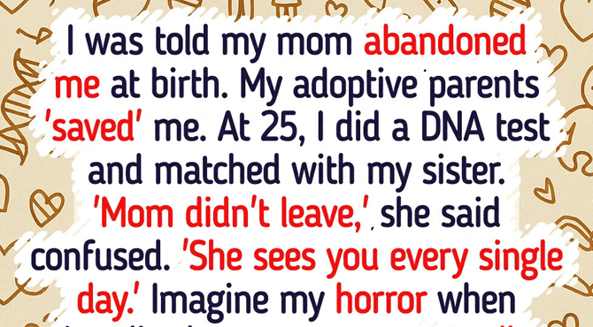 I was told my mom abandoned me at birth. My adoptive parents “saved” me. At 25, I did a DNA test and matched with my sister. “Mom didn’t leave,” she said, confused. “She sees you every single day.”