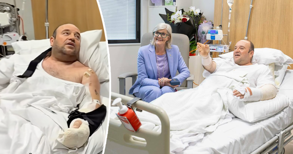 Bondi Beach hero asks emotional question as he’s handed $2.5 million check while in hospital